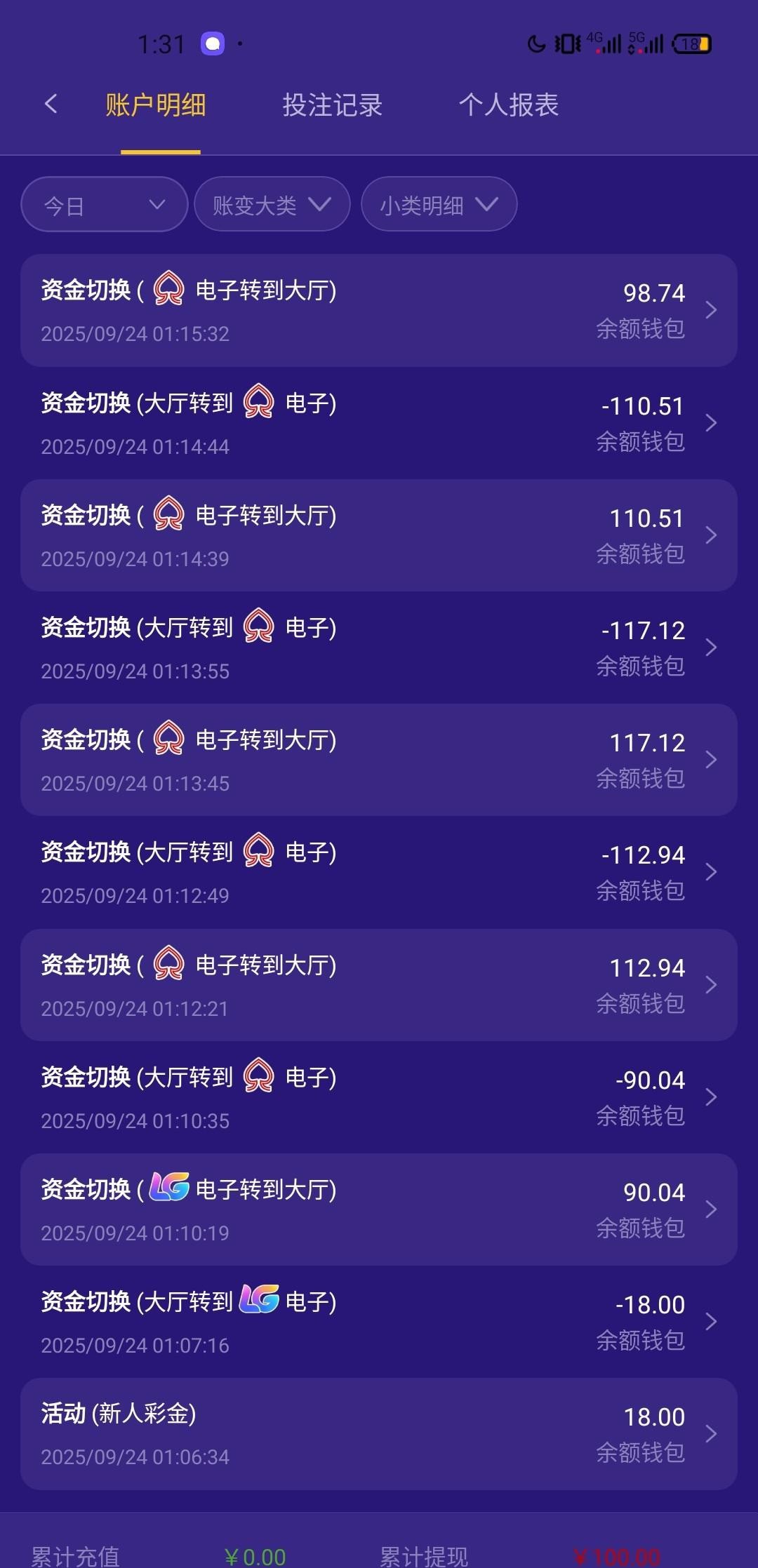 出款情况:自测(