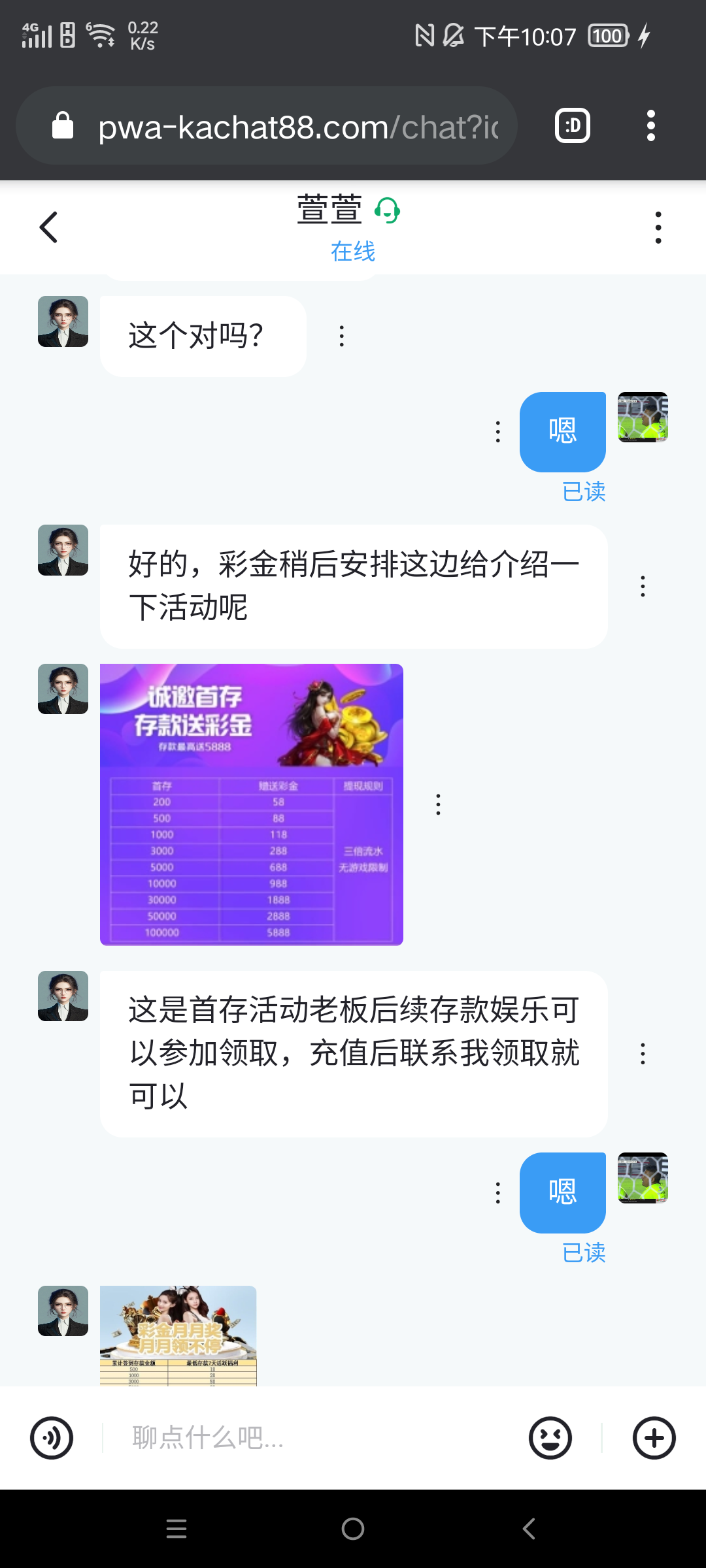 注册好了账号,联系客服发手机号和账号,如果是特邀客服会让你下载咖聊添加专员送彩金,我送了188,自行测试!