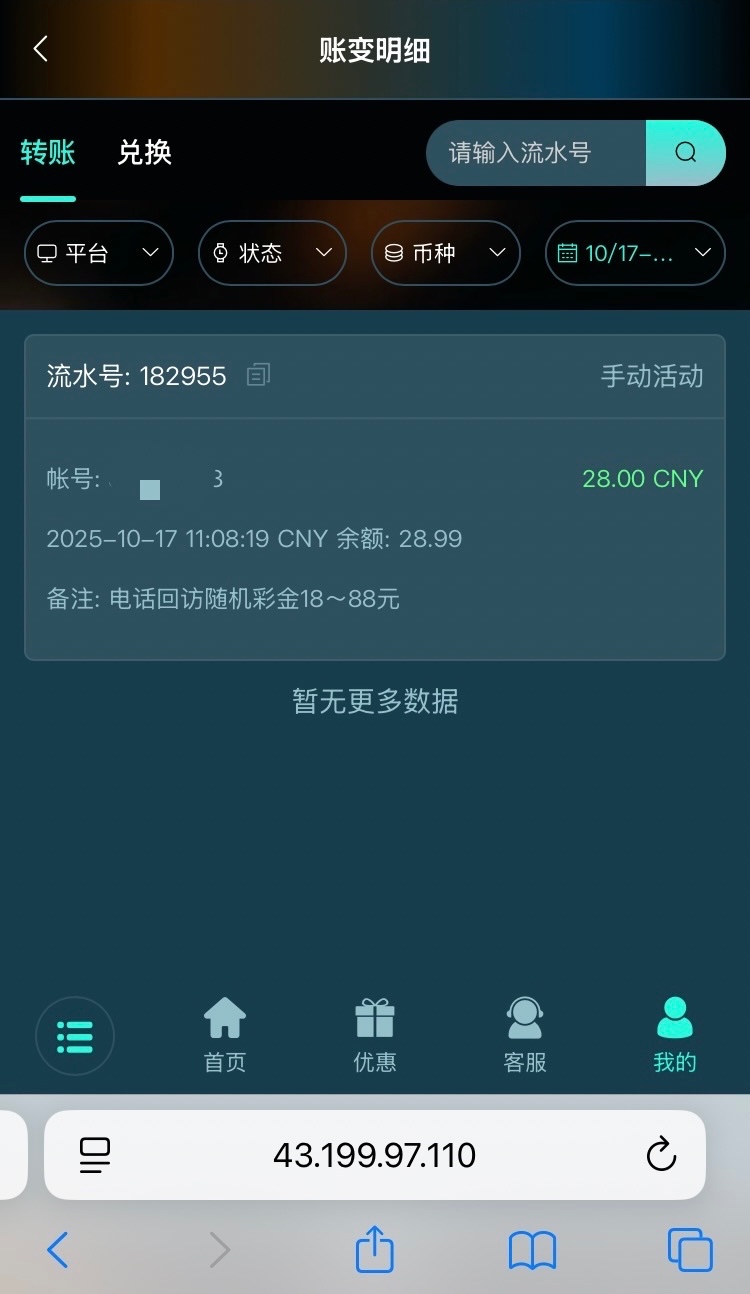 有号的去看看,我没有接电话,登陆上去就有28彩金。