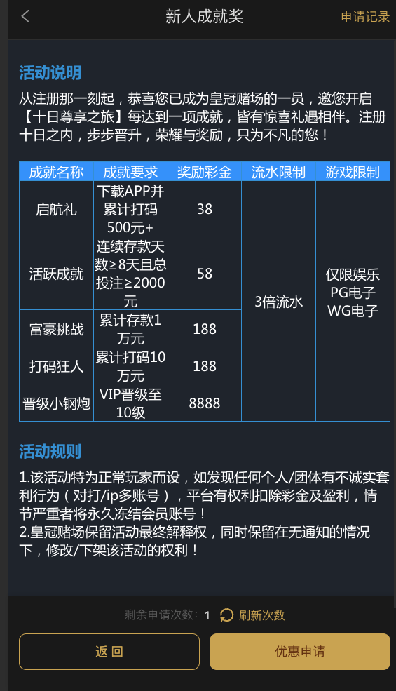 一、首存100%(分天领取和注册18不共享)
