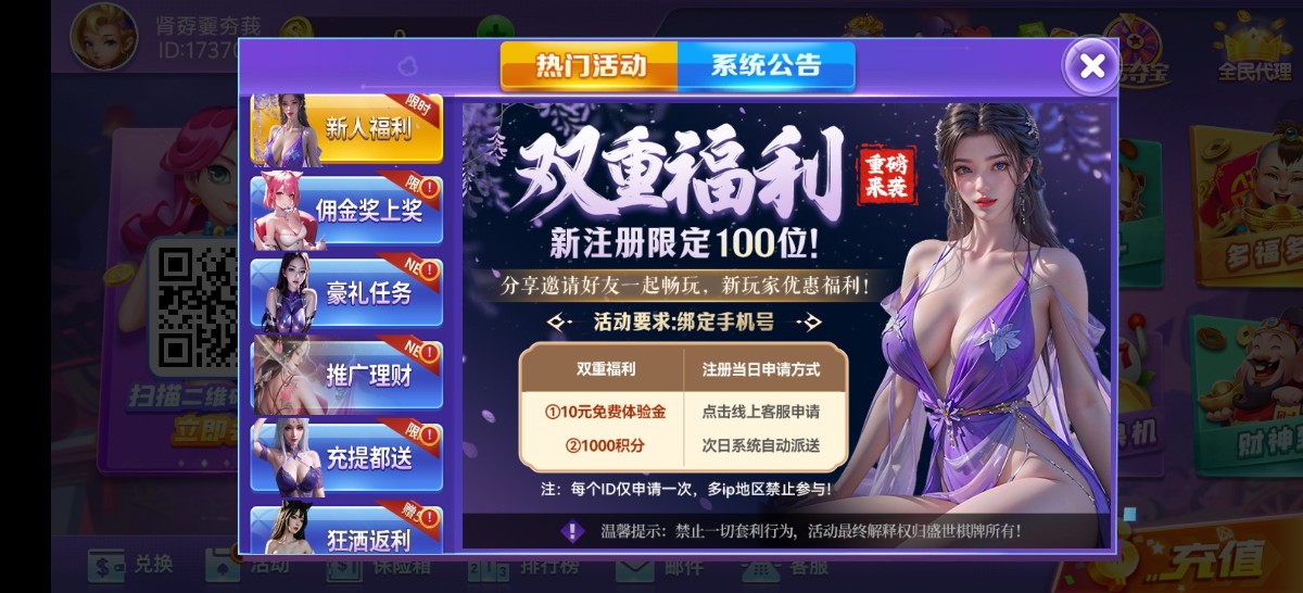 注册绑定手机号送2金币,然后再去客服申请新人注册10元彩金,一共12,10元门槛可以先去打通比牛牛,上20就可以去炸金花很好赢的,如果没有就去打捕鱼1元门槛网址 s3699.com