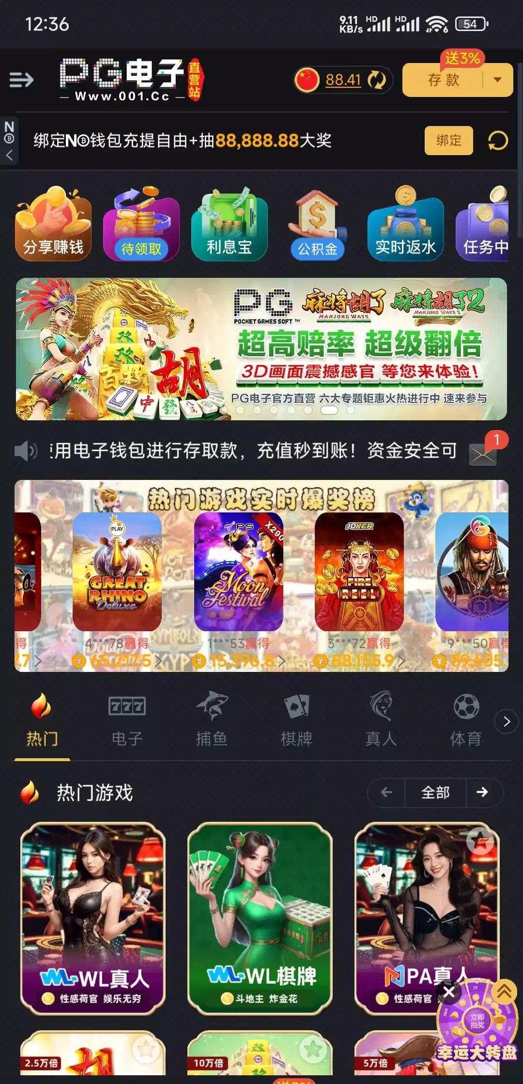 pg电子001昨天回馈了88,有号去看看