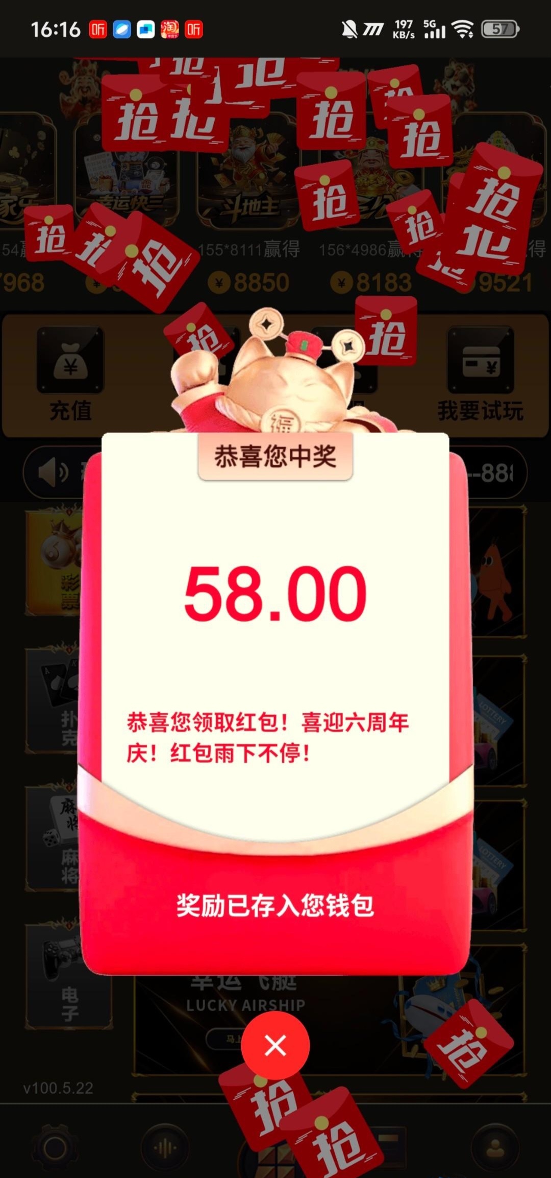 接到电话下载注册就送58 我没打出来 不知道黑不黑 出款自测