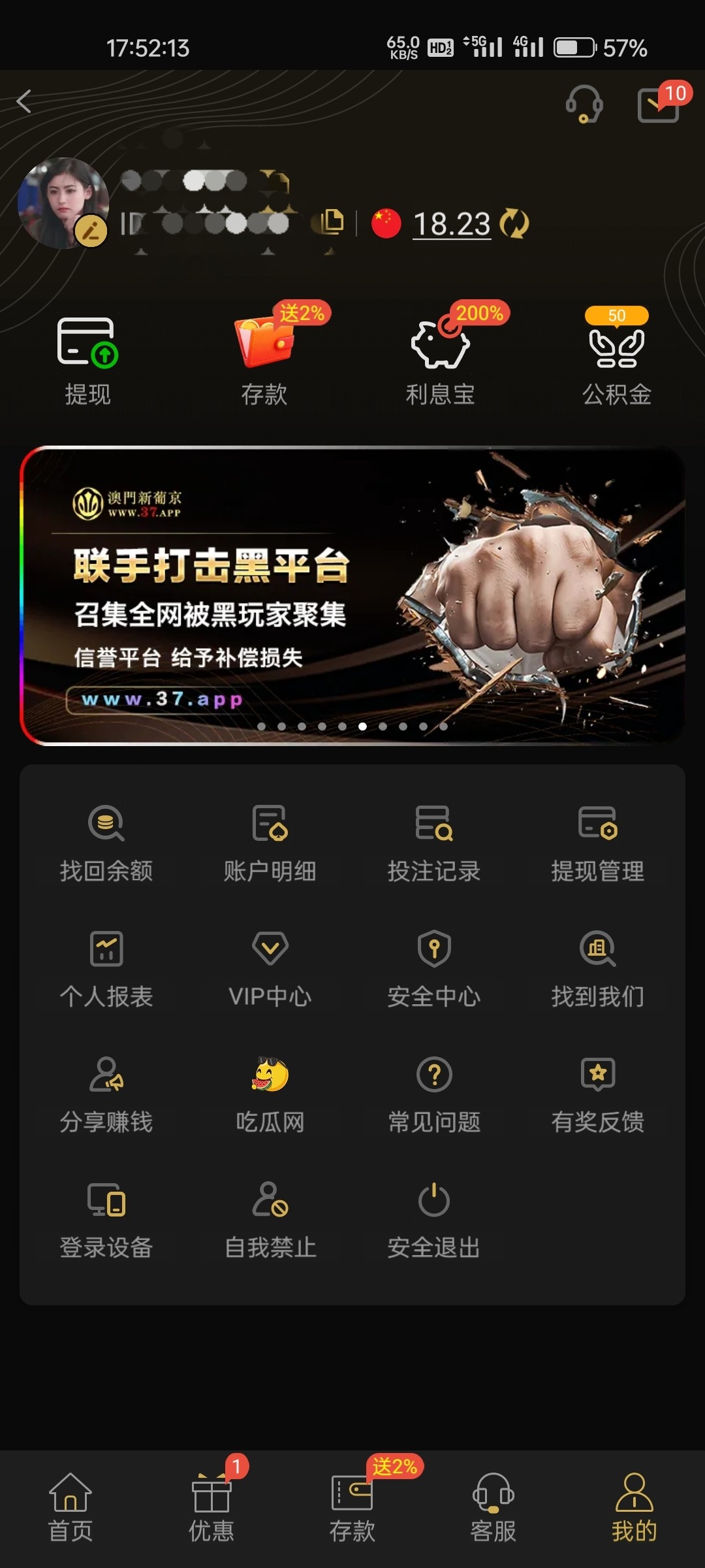 葡京37充值过100以上的一段没登录的找客服或者小知聊客服领18电话彩金我就是碰的,加上找小知聊客服领18迁移彩金一共36,打出来的老哥晒晒图领到的老哥晒晒图,我没打出来!
