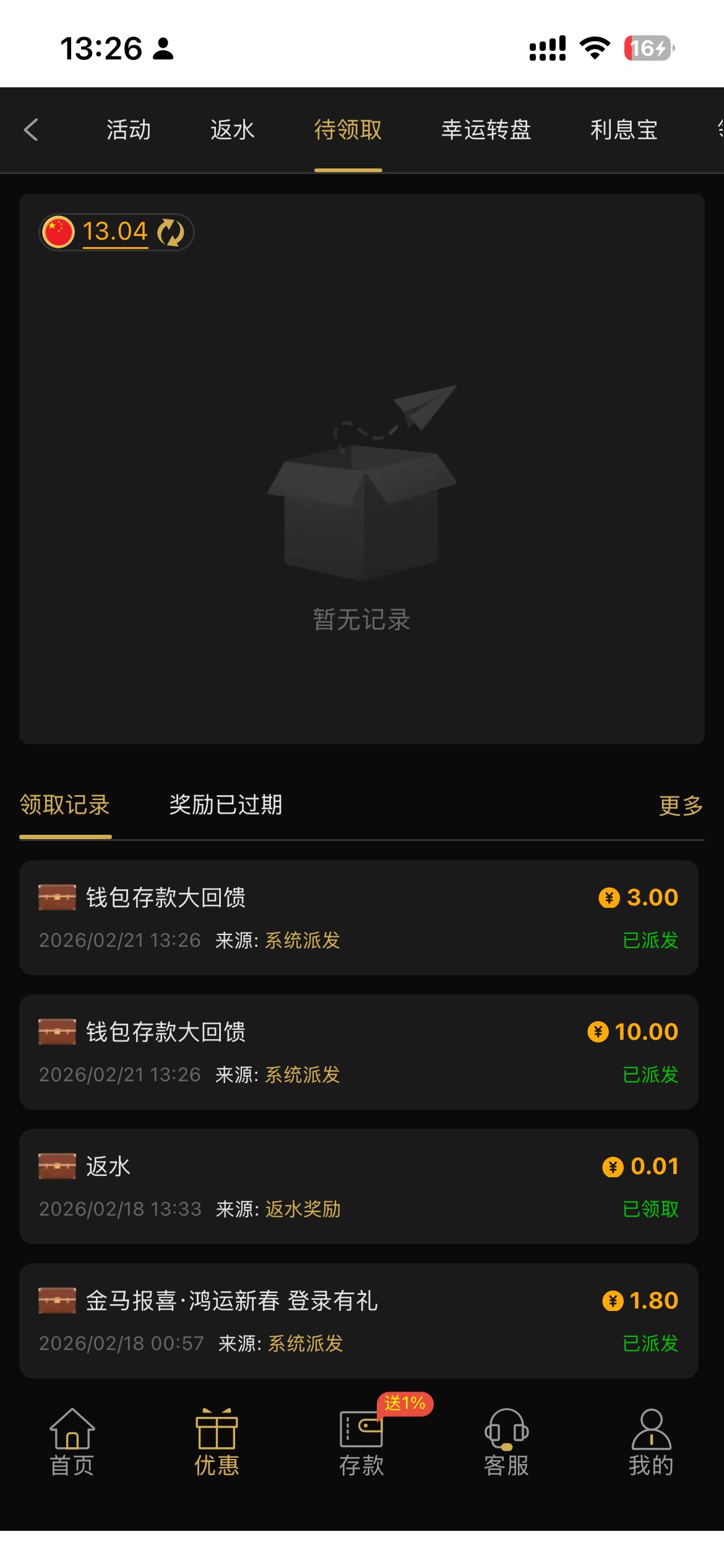 太阳城 回馈彩金有充值过钱包的,过去看看