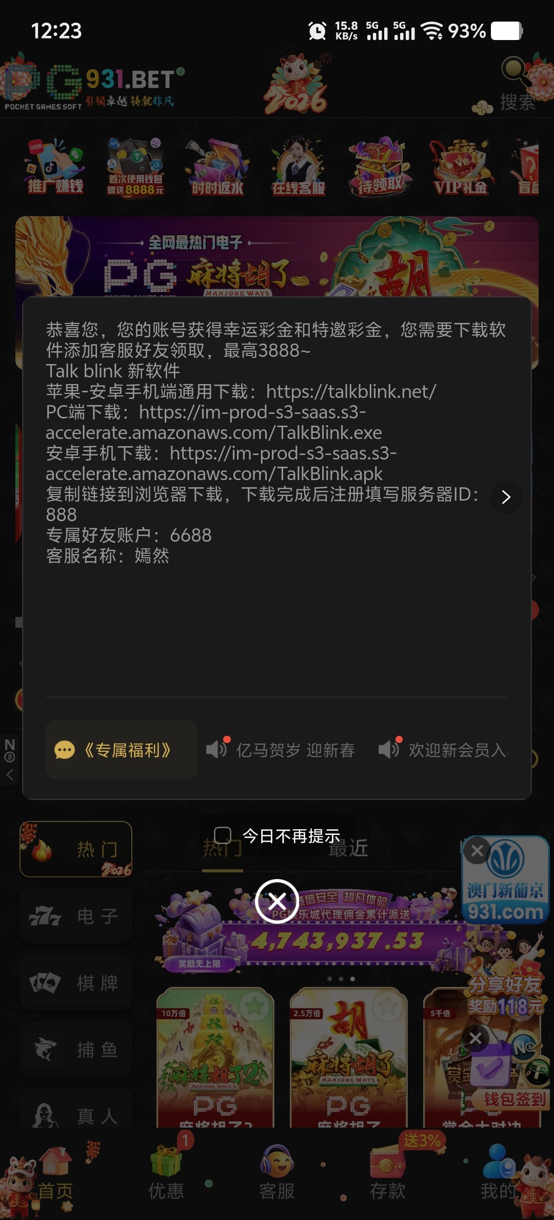 站内信有幸运彩金可以找tb客服去领取,电话也接到了,给了22,有号的自己登录查看