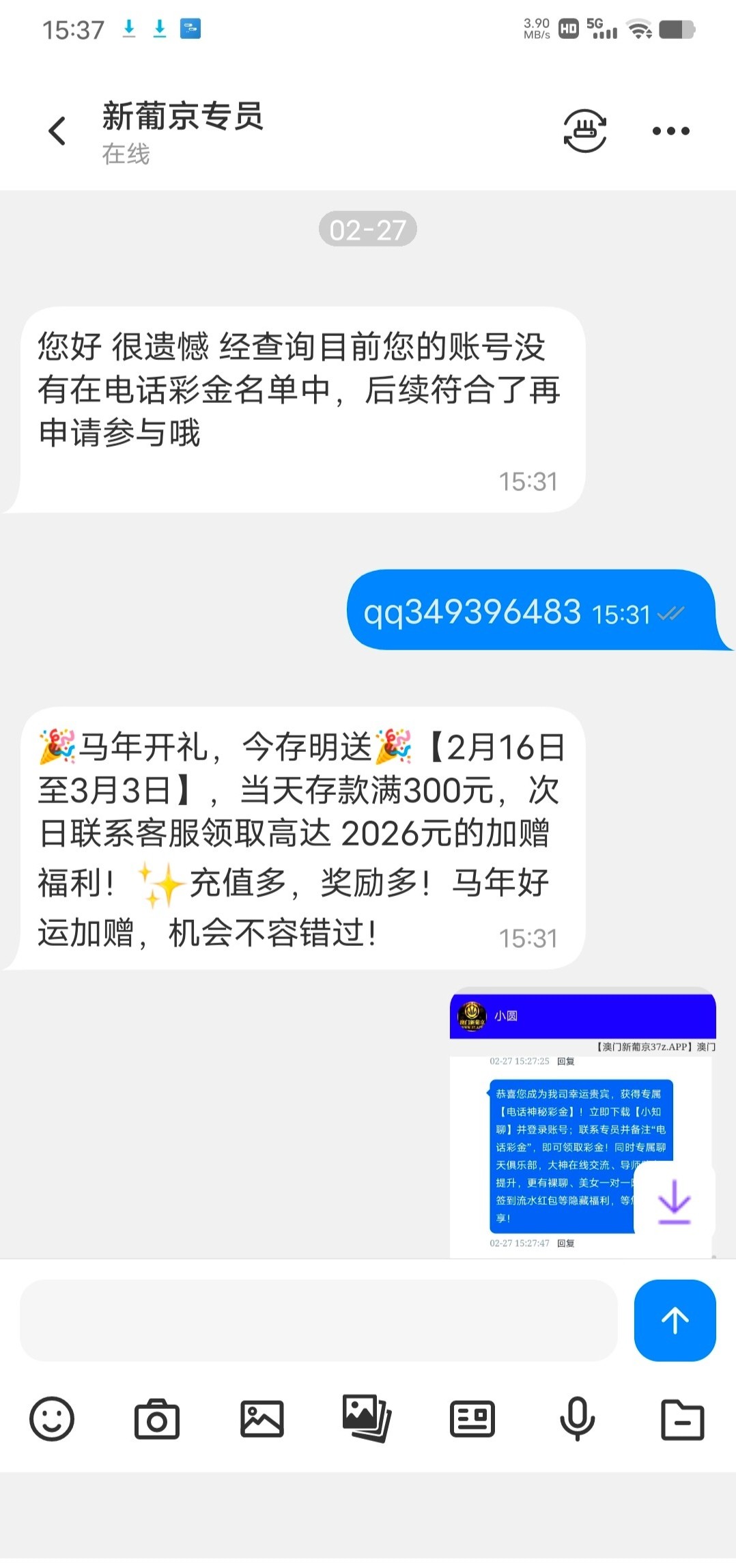 我没接到电话,找在线客服碰瓷的,然后专员开始还不愿意给,我截图给专员最后给了18彩金